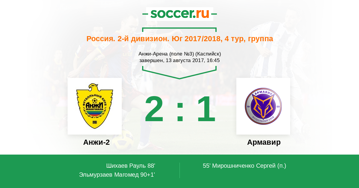 Россия. Вторая лига. Группа 1 19.11.2017 Армавир Логотип футбольный клуб Армавир 3:1 Логотип футбольный клуб Анжи-2 (Махачкала) Анжи-2