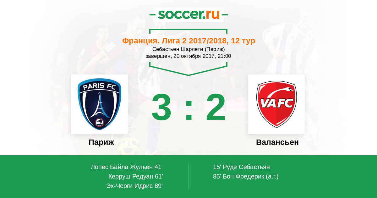 Франция. Лига 2 16.03.2018 Валансьен Логотип футбольный клуб Валансьен 2:4 Логотип футбольный клуб Париж Париж