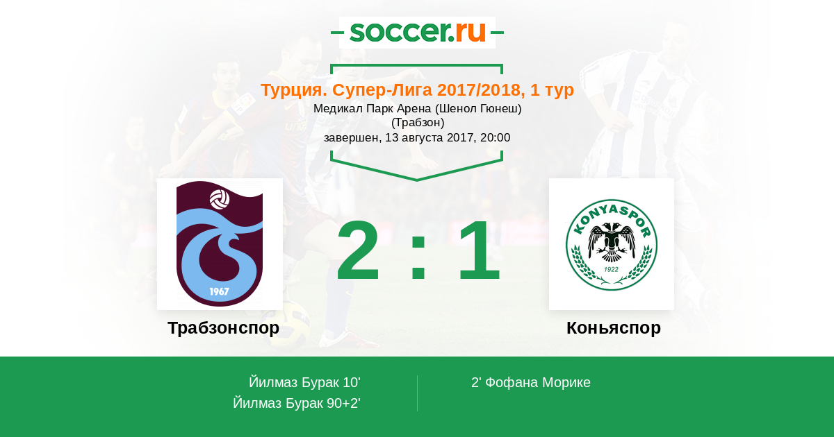 Турция. Суперлига 25.02.2017 Коньяспор Логотип футбольный клуб Коньяспор 1:1 Логотип футбольный клуб Трабзонспор Трабзонспор