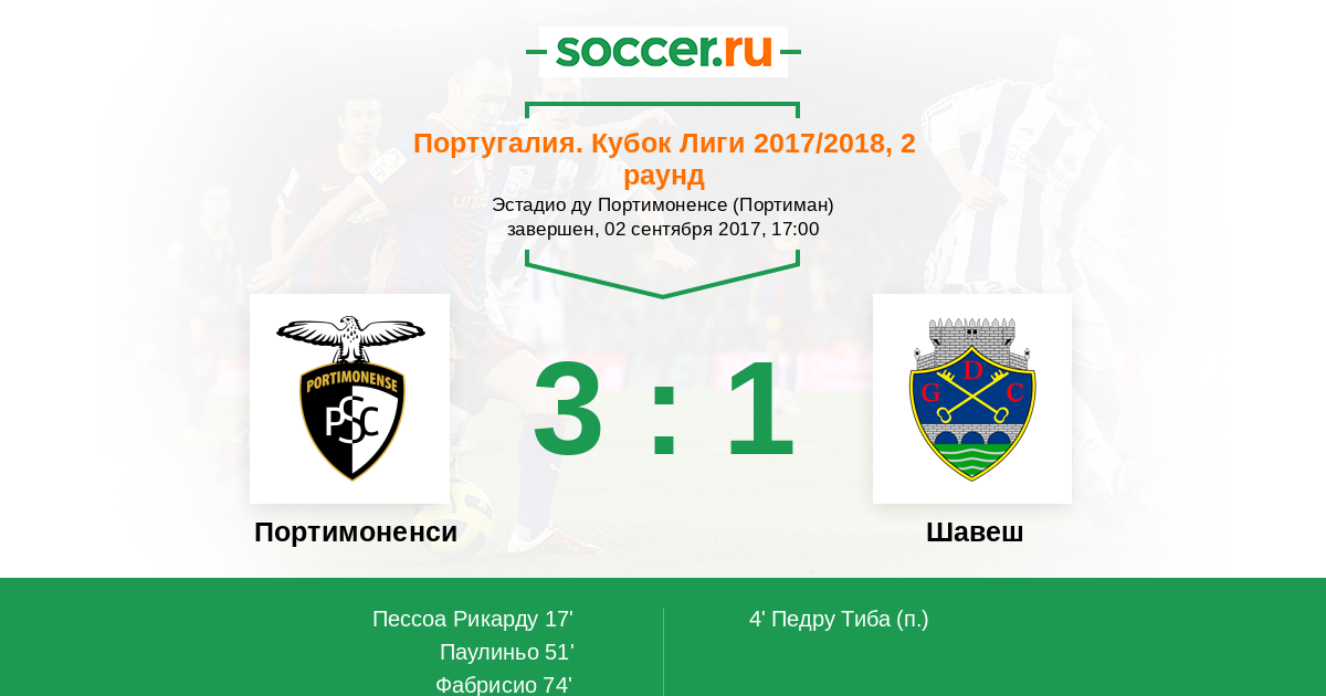 Португалия. Примейра 18.08.2018 Шавеш Логотип футбольный клуб Шавеш 2:0 Логотип футбольный клуб Портимоненси (Портиман) Портимоненси