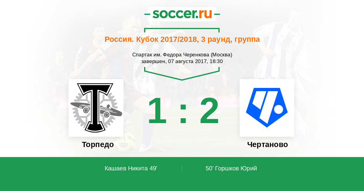 Россия. Вторая лига. Группа 3 20.07.2016 Торпедо Логотип футбольный клуб Торпедо (Москва) 2:1 Логотип футбольный клуб Чертаново (Москва) Чертаново