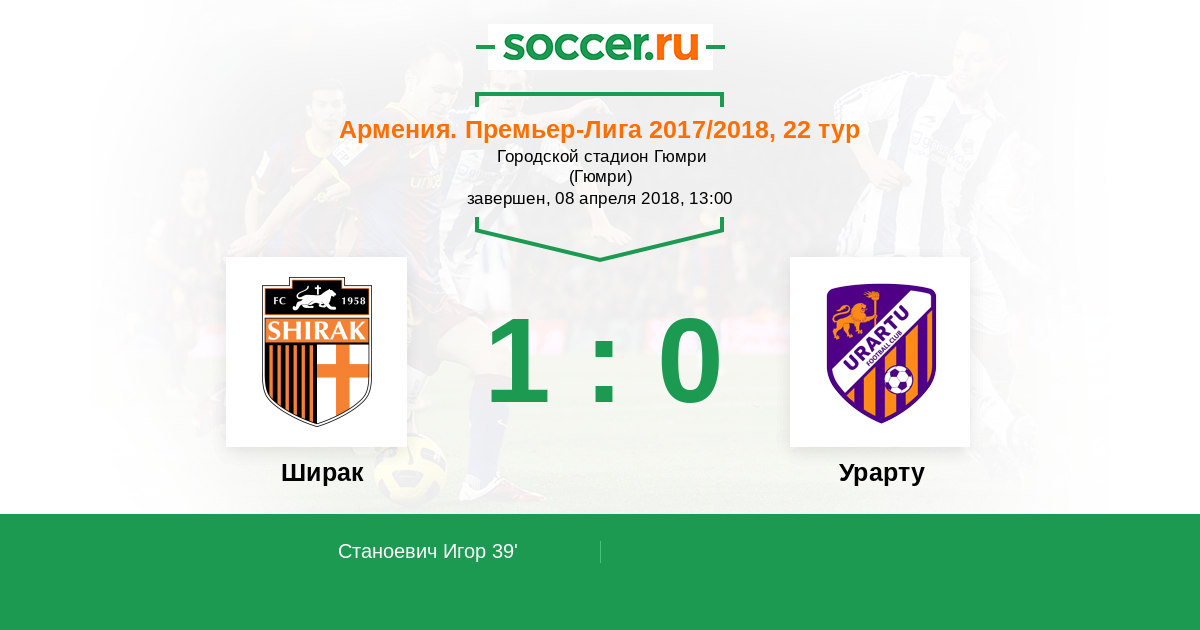 Армения. Премьер-лига 27.04.2013 Ширак Логотип футбольный клуб Ширак (Гюмри) 2:0 Логотип футбольный клуб Бананц (Ереван) Бананц