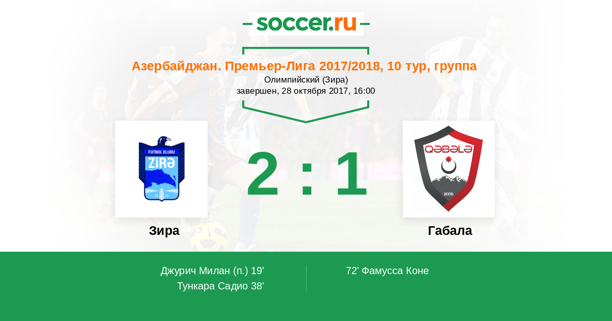 Азербайджан. Премьер-Лига 05.10.2018 Зира Логотип футбольный клуб Зира 1:0 Логотип футбольный клуб Габала Габала
