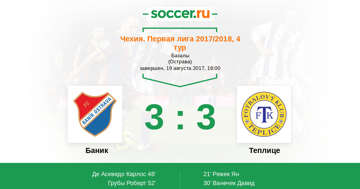 Чехия. Первая Лига 08.08.2014 Баник Логотип футбольный клуб Баник (Острава) 1:1 Логотип футбольный клуб Теплице Теплице