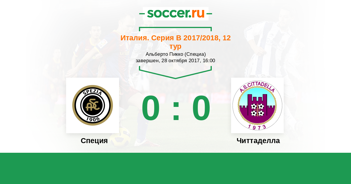 Италия. Серия В 06.12.2014 Специя Логотип футбольный клуб Специя 0:0 Логотип футбольный клуб Читтаделла Читтаделла
