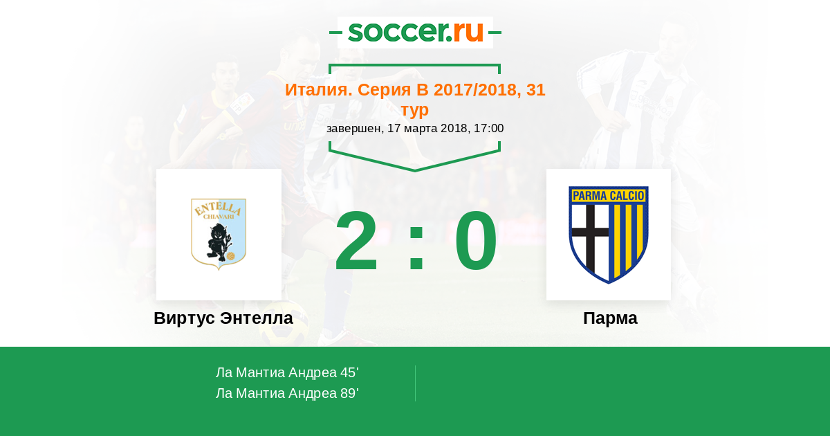 Виртус Энтелла 1:3 0:0 1:3