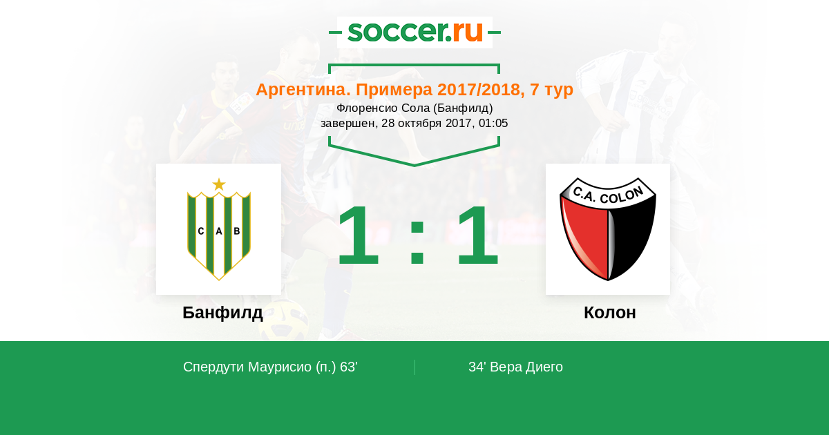 Аргентина. Суперлига 14.08.2010 Колон Логотип футбольный клуб Колон (Санте-Фе) 0:1 Логотип футбольный клуб Банфилд Банфилд
