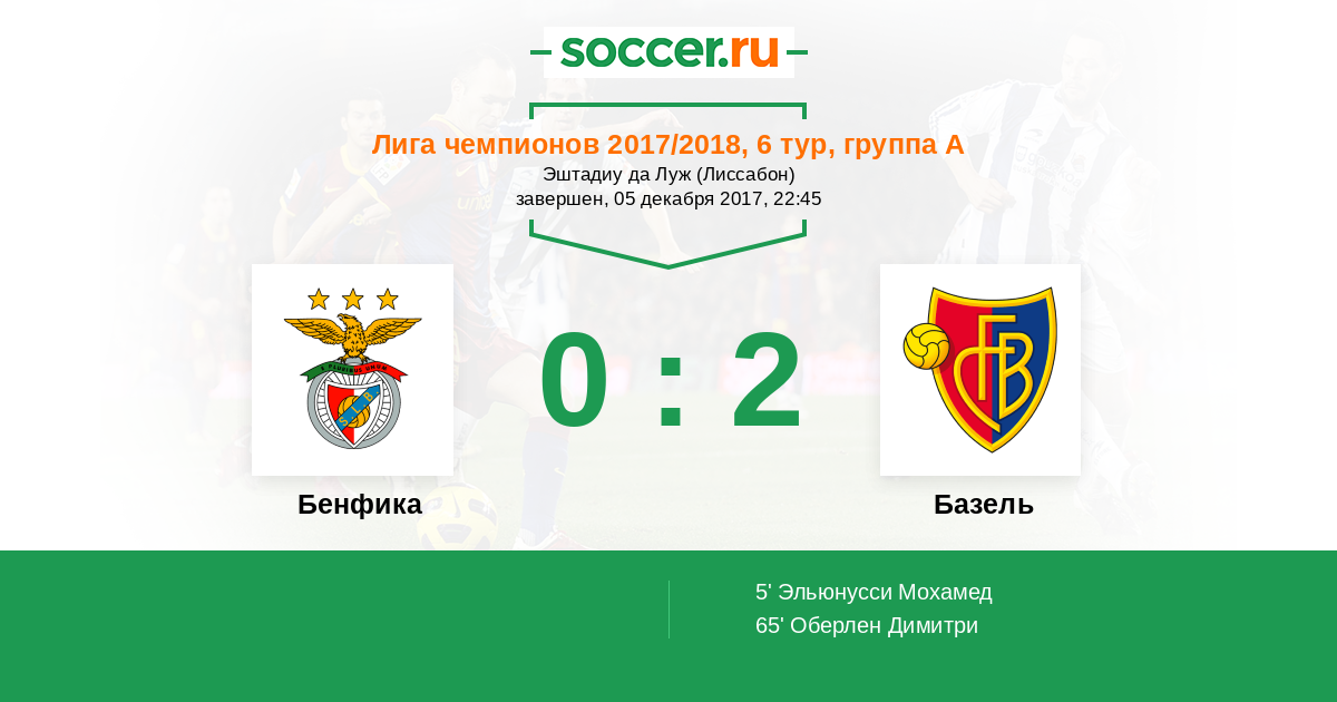 Бенфика переиграет Базель.