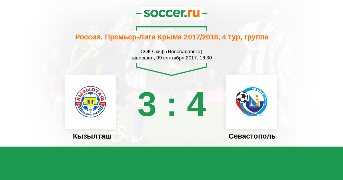 Россия. Премьер-Лига Крыма 15.09.2018 Севастополь Логотип футбольный клуб Севастополь 3:0 Логотип футбольный клуб Кызылташ (Бахчисарай) Кызылташ