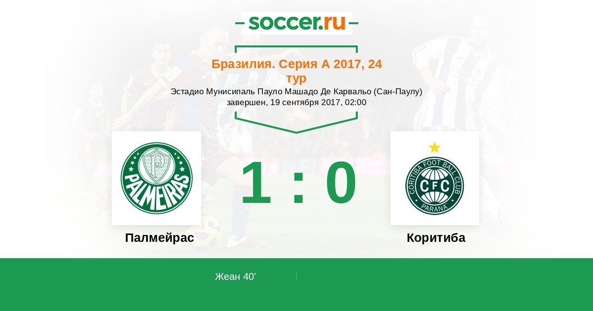 Бразилия. Серия А 24.09.2016 Палмейрас Логотип футбольный клуб Палмейрас (Сан-Паулу) 2:1 Логотип футбольный клуб Коритиба Коритиба