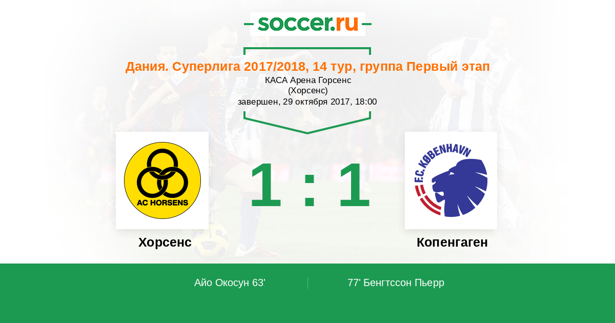 Дания. Суперлига 12.08.2017 Копенгаген Логотип футбольный клуб Копенгаген 1:1 Логотип футбольный клуб Хорсенс Хорсенс