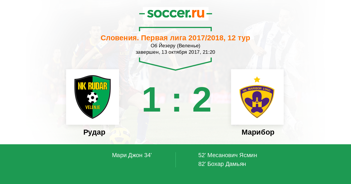 Словения. Первая Лига 29.11.2014 Марибор Логотип футбольный клуб Марибор 3:2 Логотип футбольный клуб Рудар (Велене) Рудар