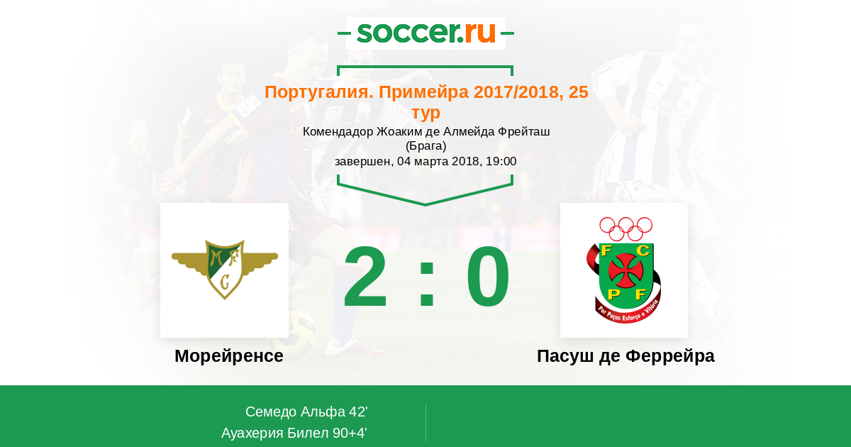 Португалия. Примейра 20.01.2017 Пасуш де Феррейра Логотип футбольный клуб Пасуш де Феррейра 0:2 Логотип футбольный клуб Морейренcе (Морейра-де-Конегуш) Морейренcе