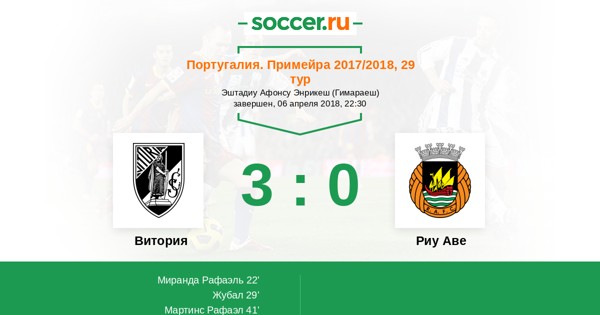 Португалия. Примейра 19.03.2017 Витория Логотип футбольный клуб Витория (Гимараеш) 3:0 Логотип футбольный клуб Риу Аве (Вила-ду-Конди) Риу Аве