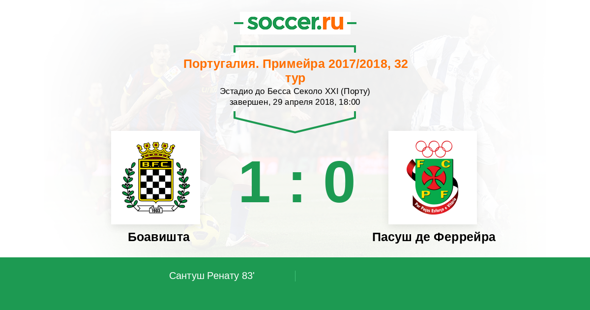 Португалия. Примейра 15.12.2017 Пасуш де Феррейра Логотип футбольный клуб Пасуш де Феррейра 1:2 Логотип футбольный клуб Боавишта (Порту) Боавишта
