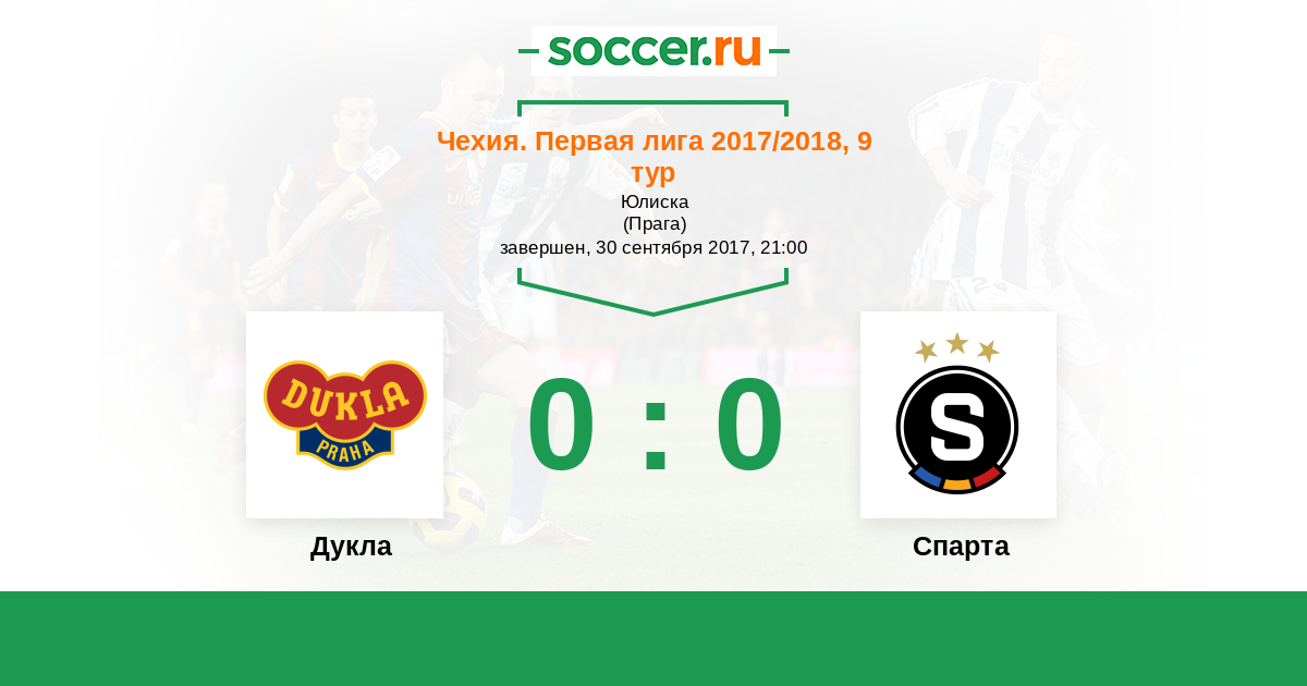 Чехия. Первая Лига 31.08.2018 Спарта Логотип футбольный клуб Спарта (Прага) 2:0 Логотип футбольный клуб Дукла (Прага) Дукла
