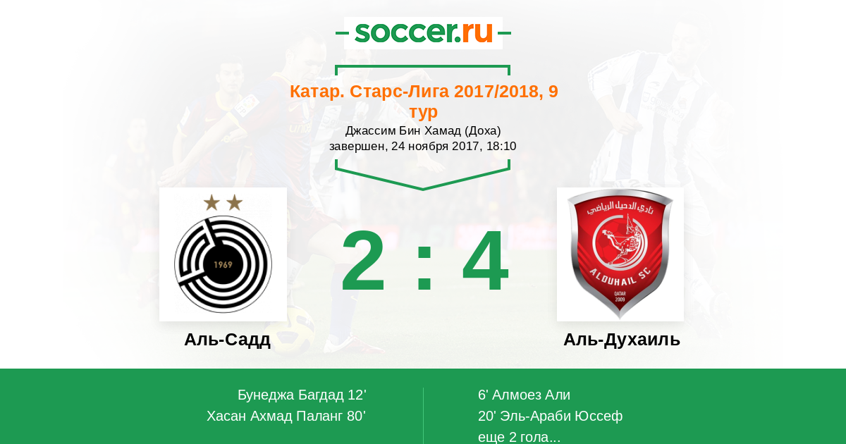 Катар. Старс Лига 01.03.2018 Аль-Духаиль Логотип футбольный клуб Аль-Духаиль (Доха) 4:3 Логотип футбольный клуб Аль-Садд (Доха) Аль-Садд