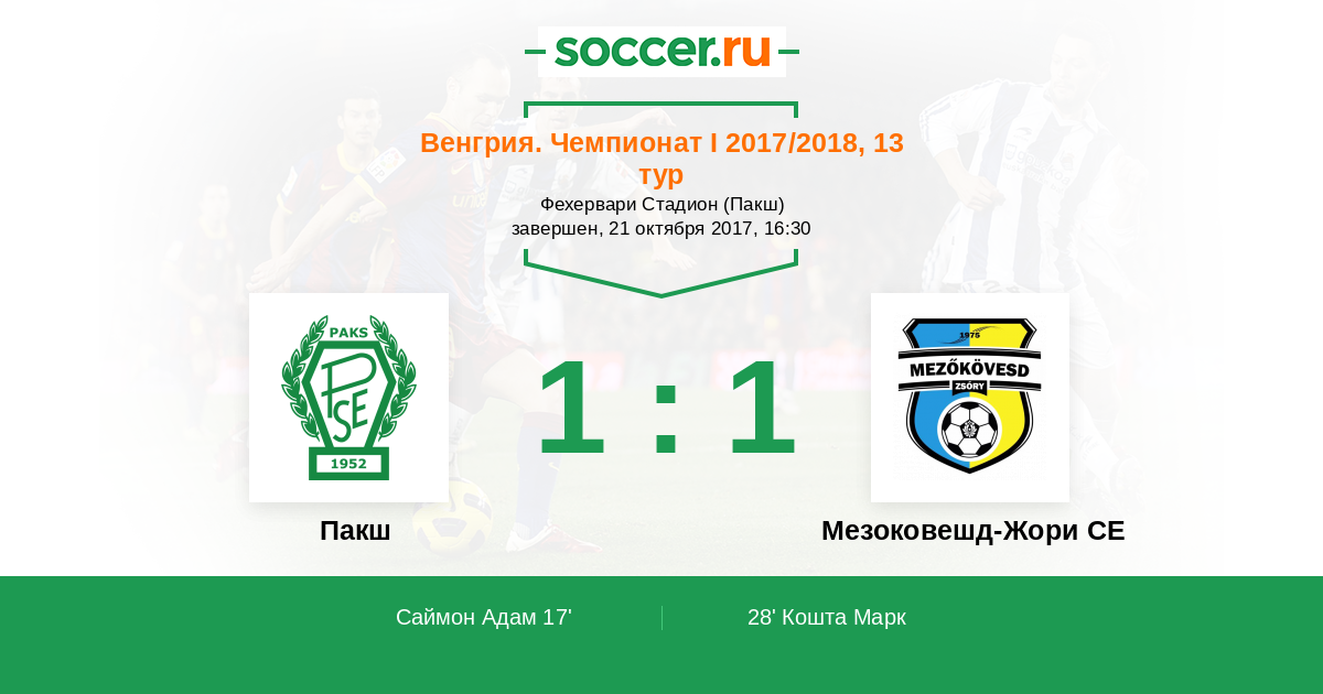 Венгрия. Чемпионат 1 22.07.2017 Мезоковешд-Жори СЕ Логотип футбольный клуб Мезоковешд-Жори СЕ 3:2 Логотип футбольный клуб Пакш Пакш