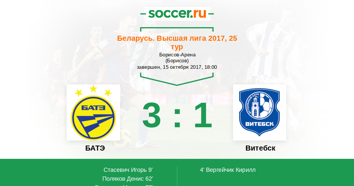 Беларусь. Высшая лига 25.06.2016 БАТЭ Логотип футбольный клуб БАТЭ (Борисов) 1:0 Логотип футбольный клуб Витебск Витебск