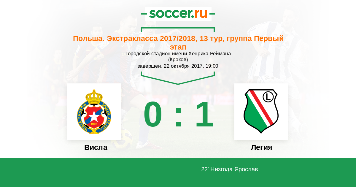 Польша. Экстракласса 12.03.2017 Легия Логотип футбольный клуб Легия (Варшава) 1:0 Логотип футбольный клуб Висла (Краков) Висла