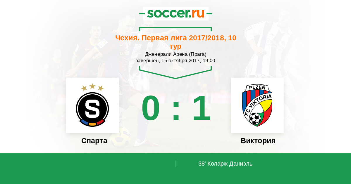 Чехия. Первая Лига 23.10.2016 Виктория Логотип футбольный клуб Виктория (Пльзень) 1:0 Логотип футбольный клуб Спарта (Прага) Спарта