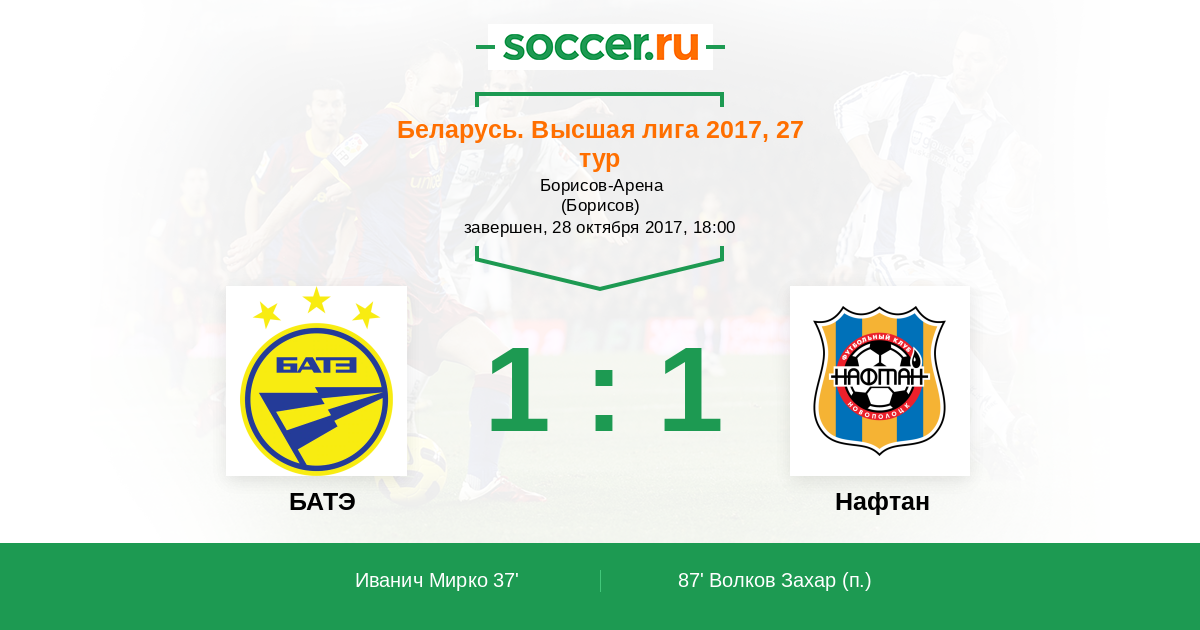 Беларусь. Высшая лига 09.08.2014 Нафтан Логотип футбольный клуб Нафтан (Новополоцк) 1:1 Логотип футбольный клуб БАТЭ (Борисов) БАТЭ