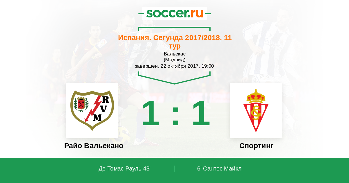 Испания. Сегунда 16.11.2020 Спортинг Логотип футбольный клуб Спортинг (Хихон) 1:1 Логотип футбольный клуб Райо Вальекано (Мадрид) Райо Вальекано