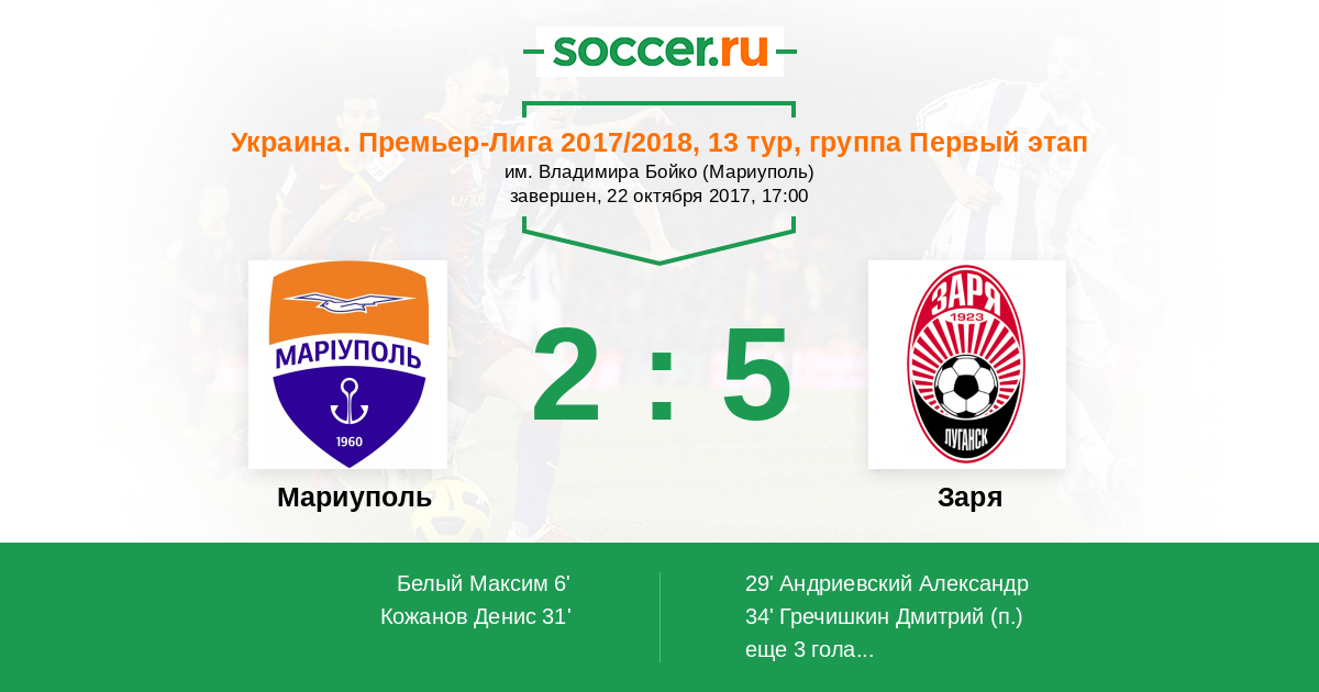 Украина. Премьер-Лига 23.07.2017 Заря Логотип футбольный клуб Заря (Луганск) 1:1 Логотип футбольный клуб Мариуполь Мариуполь