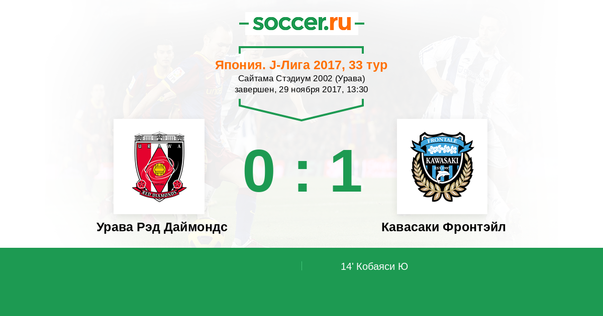 Япония. J-Лига 1 05.11.2019 Урава Рэд Даймондс Логотип футбольный клуб Урава Рэд Даймондс (Сайтама) 0:2 Логотип футбольный клуб Кавасаки Фронтэйл Кавасаки Фронтэйл