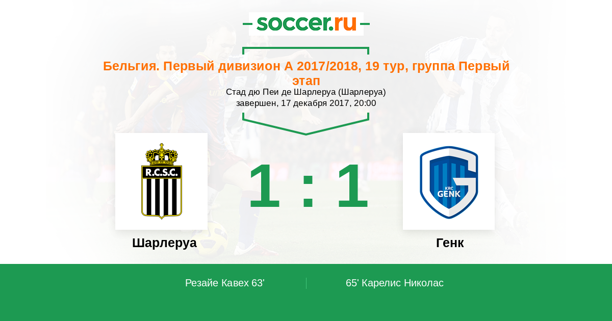 Бельгия. Про-Лига 19.02.2017 Генк Логотип футбольный клуб Генк 1:1 Логотип футбольный клуб Шарлеруа Шарлеруа