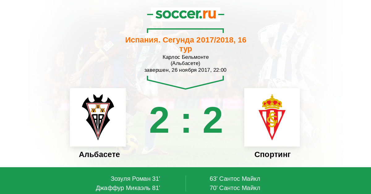 Испания. Сегунда 29.04.2018 Спортинг Логотип футбольный клуб Спортинг (Хихон) 2:1 Логотип футбольный клуб Альбасете Альбасете
