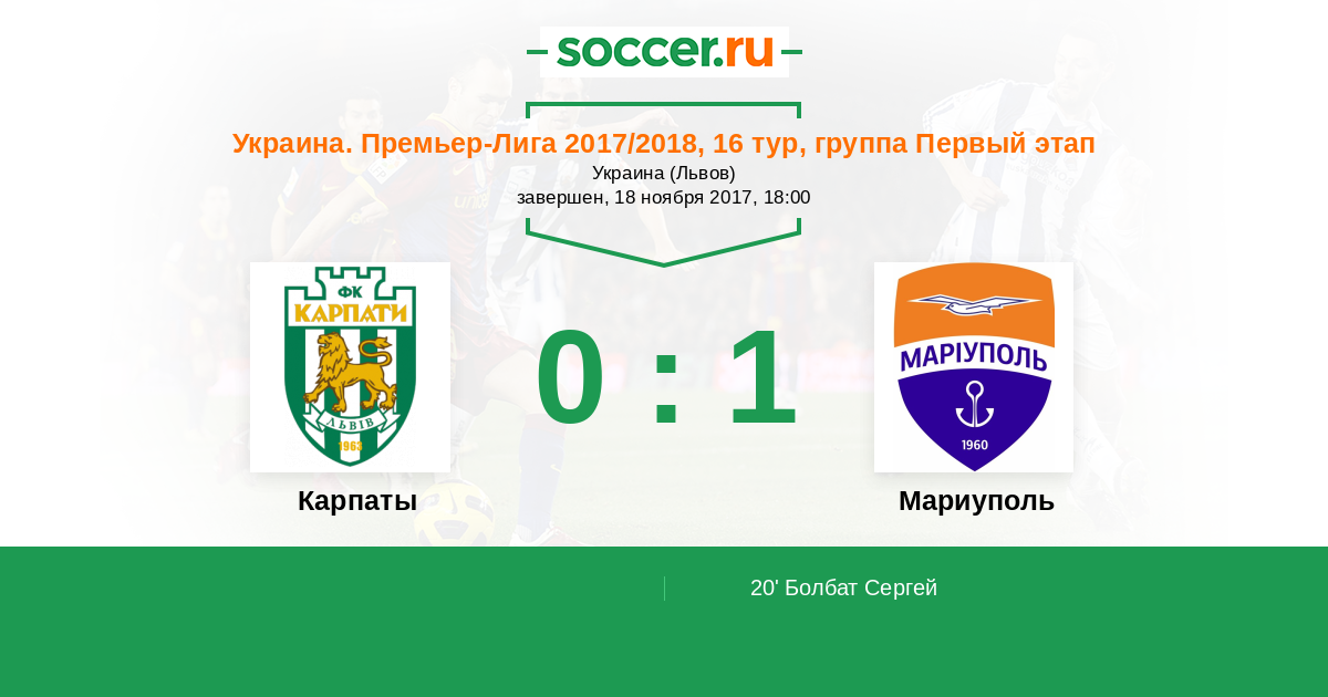 Украина. Премьер-Лига 19.10.2014 Карпаты Логотип футбольный клуб Карпаты (Львов) 1:0 Логотип футбольный клуб Ильичевец (Мариуполь) Ильичевец
