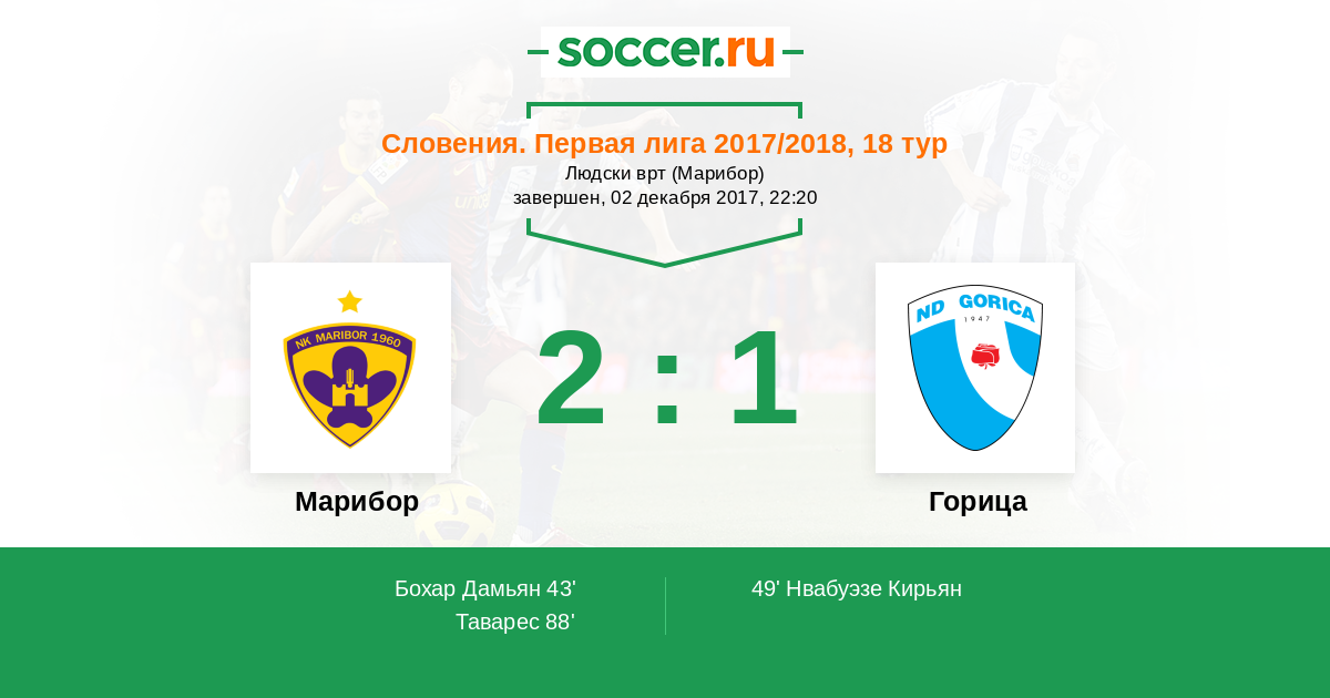Словения. Первая Лига 22.10.2016 Марибор Логотип футбольный клуб Марибор 1:0 Логотип футбольный клуб Горица (Ново-Горица) Горица