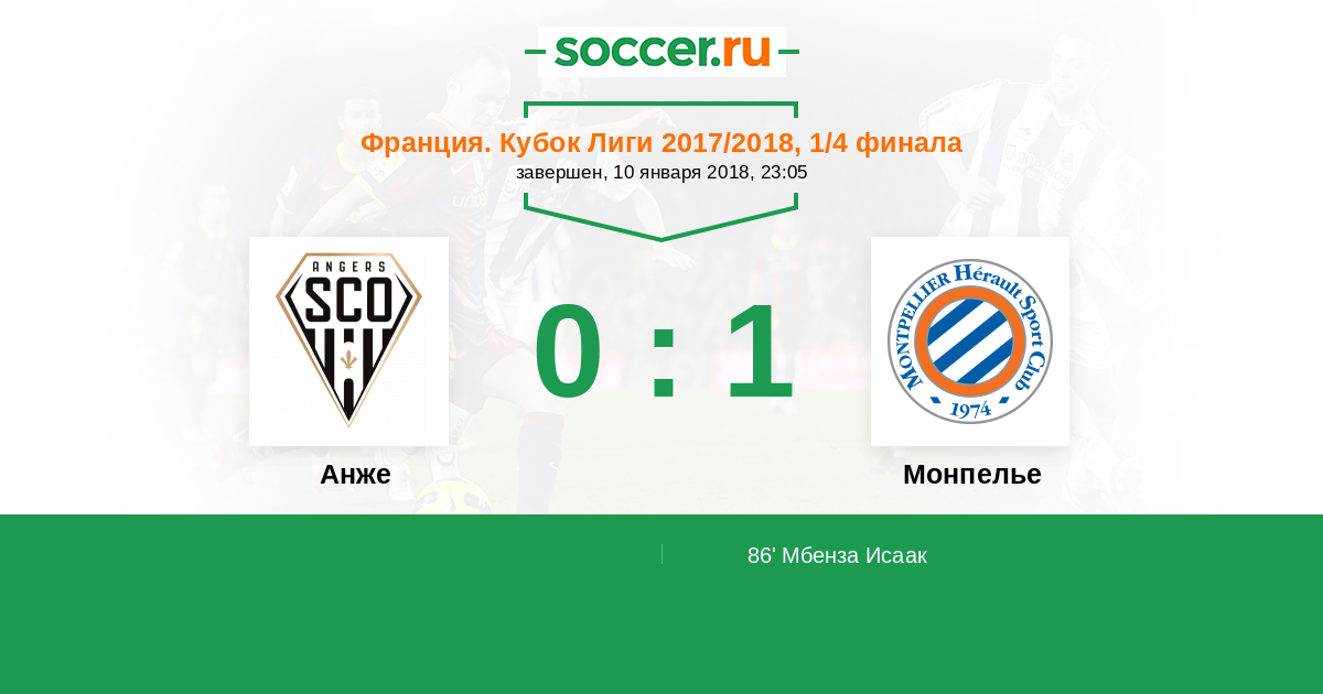 Франция. Лига 1 10.11.2018 Анже Логотип футбольный клуб Анже 1:0 Логотип футбольный клуб Монпелье Монпелье