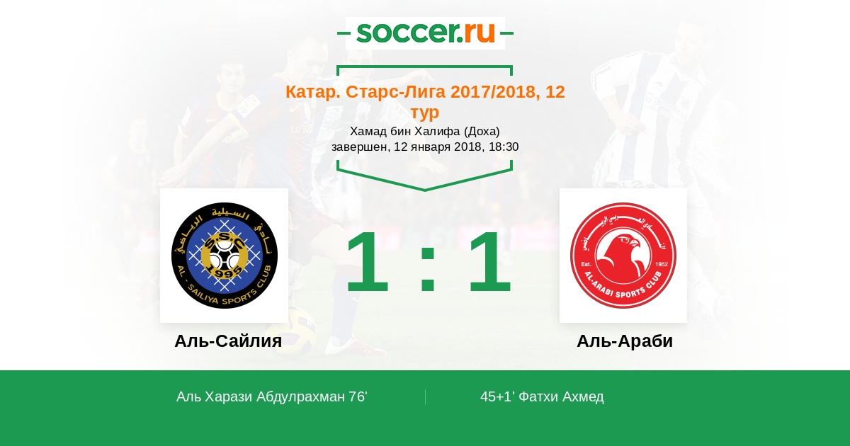 Катар. Старс Лига 16.09.2017 Аль-Араби Логотип футбольный клуб Аль-Араби (Доха) 1:3 Логотип футбольный клуб Аль-Сайлия (Доха) Аль-Сайлия