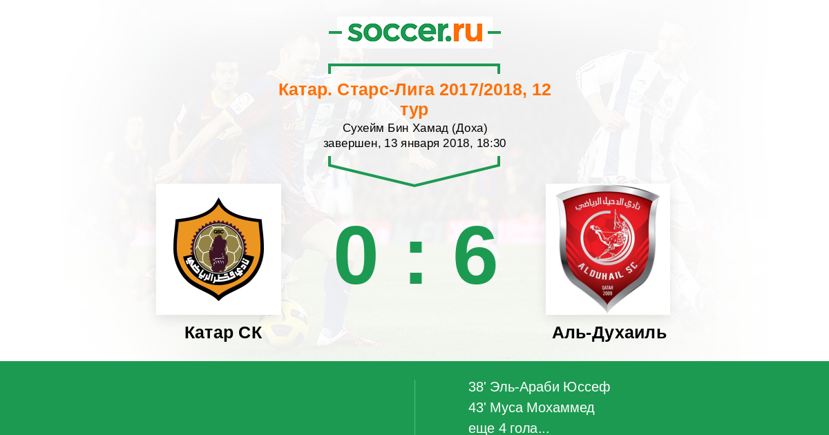Катар. Старс Лига 16.12.2013 Лекхвия Логотип футбольный клуб Лекхвия (Доха) 4:2 Логотип футбольный клуб Катар СК (Доха) Катар СК