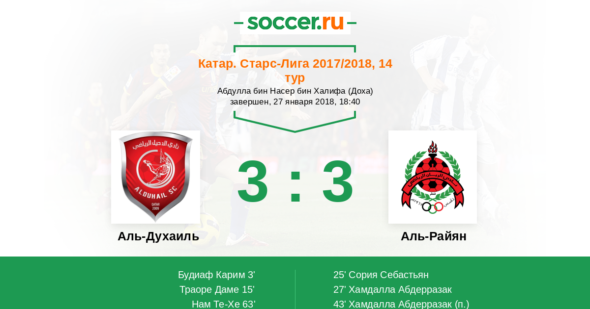 Катар. Старс Лига 10.02.2017 Аль-Райян Логотип футбольный клуб Аль-Райян 1:1 Логотип футбольный клуб Лекхвия (Доха) Лекхвия