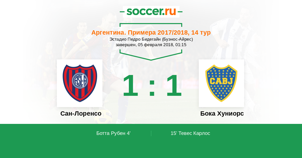 Аргентина. Суперлига 02.11.2014 Сан-Лоренсо Логотип футбольный клуб Сан-Лоренсо (Буэнос-Айрес) 2:0 Логотип футбольный клуб Бока Хуниорс (Буэнос-Айрес) Бока Хуниорс