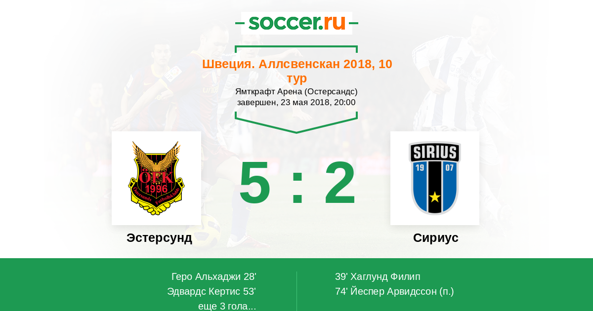 Швеция. Аллсвенскан 22.05.2021 Эстерсунд Логотип футбольный клуб Эстерсунд 3:0 Логотип футбольный клуб Сириус (Уппсала) Сириус