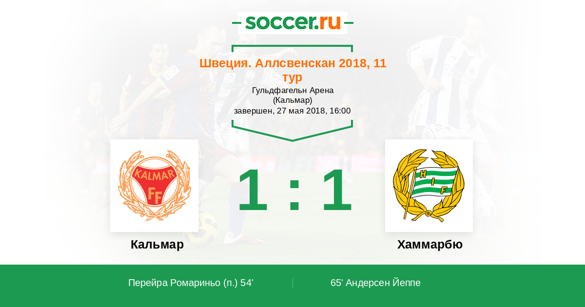 Швеция. Аллсвенскан 14.05.2016 Кальмар Логотип футбольный клуб Кальмар 1:1 Логотип футбольный клуб Хаммарбю (Стокгольм) Хаммарбю
