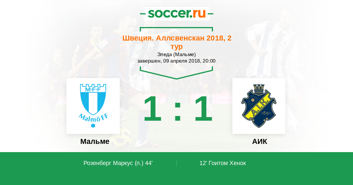 Швеция. Аллсвенскан 29.10.2018 АИК Логотип футбольный клуб АИК (Стокгольм) 1:1 Логотип футбольный клуб Мальме Мальме