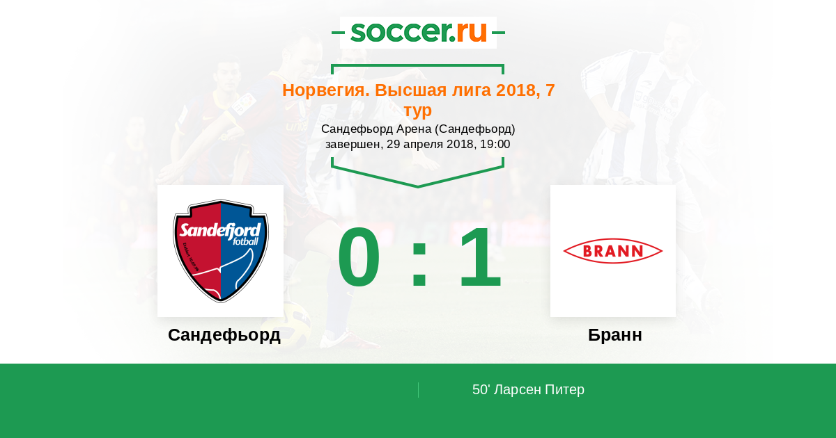 Норвегия. Высшая лига 12.05.2007 Сандефьорд Логотип футбольный клуб Сандефьорд 2:3 Логотип футбольный клуб Бранн (Берген) Бранн