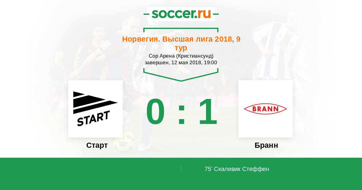 Норвегия. Высшая лига 09.05.2013 Бранн Логотип футбольный клуб Бранн (Берген) 2:0 Логотип футбольный клуб Старт (Кристиансанд) Старт