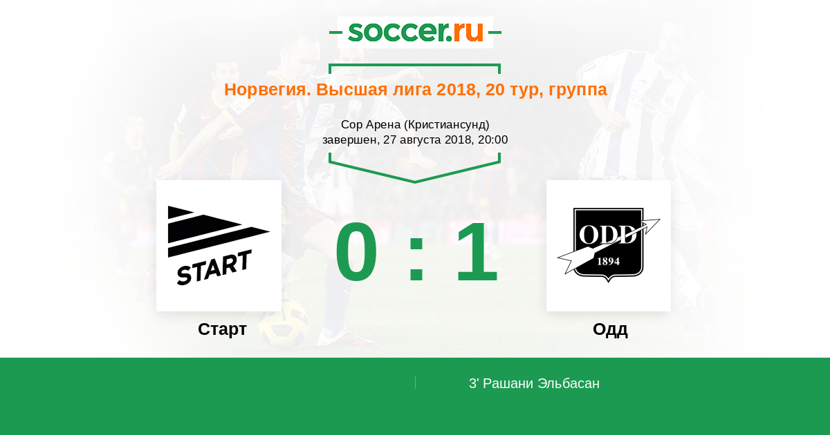 Норвегия. Высшая лига 06.05.2018 Одд Логотип футбольный клуб Одд (Шиен) 3:0 Логотип футбольный клуб Старт (Кристиансанд) Старт