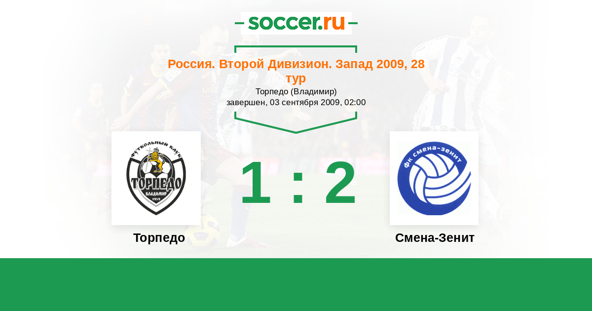 Россия. Вторая лига. Группа 2 03.09.2009 Торпедо   1:2 Логотип футбольный клуб Смена-Зенит (Санкт-Петербург) Смена-Зенит