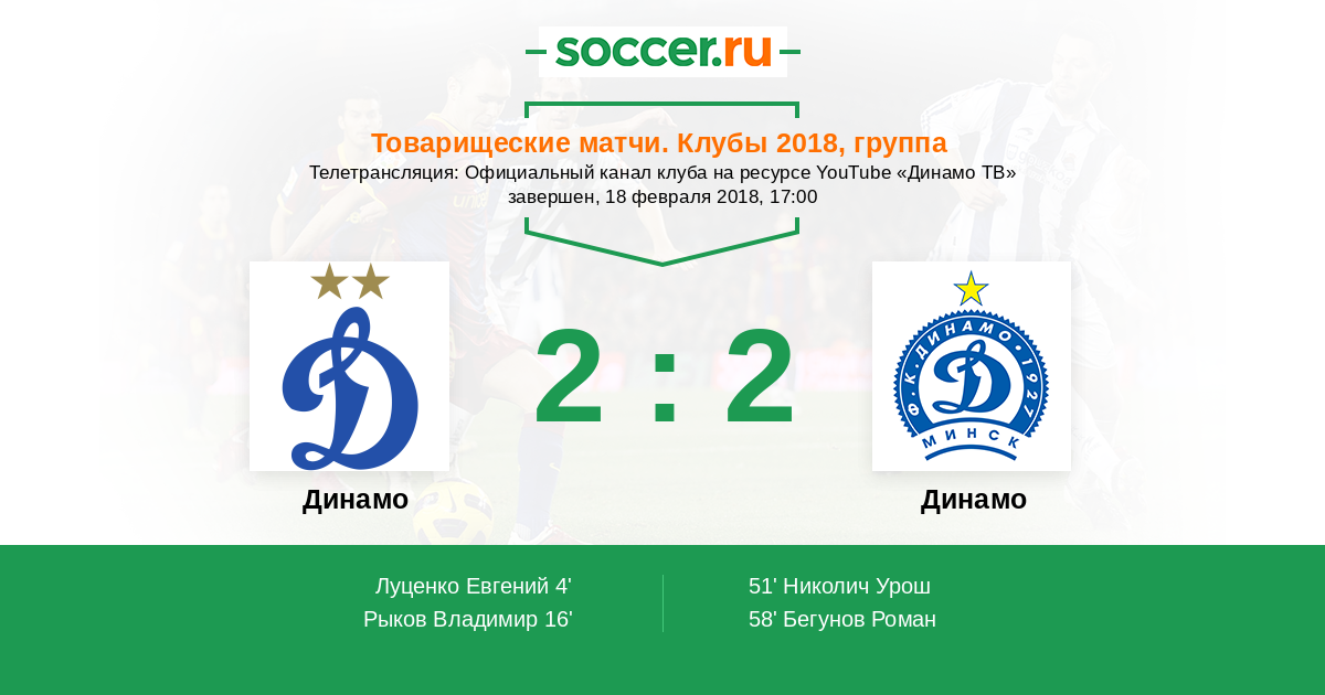 Телетрансляция: Официальный канал клуба на ресурсе YouTube «Динамо ТВ»