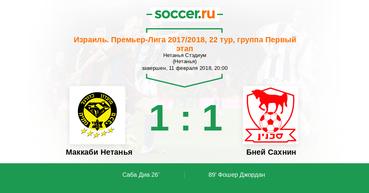 Израиль. Премьер-Лига 26.11.2011 Бней Сахнин Логотип Бней Сахнин 1:1 Логотип футбольный клуб Маккаби Нетанья Маккаби Нетанья