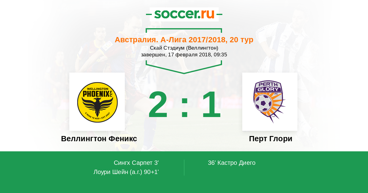 Австралия. А-Лига 05.01.2017 Перт Глори Логотип футбольный клуб Перт Глори 2:1 Логотип футбольный клуб Веллингтон Феникс Веллингтон Феникс