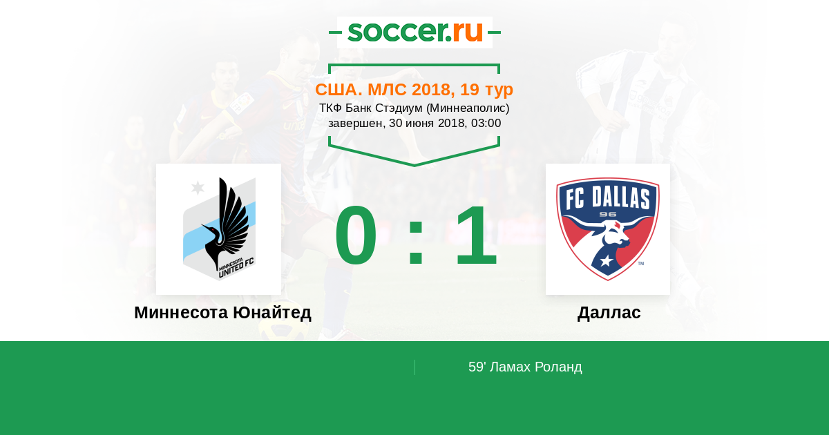 США. МЛС 14.07.2019 Миннесота Юнайтед Логотип футбольный клуб Миннесота Юнайтед 1:0 Логотип футбольный клуб Даллас Даллас