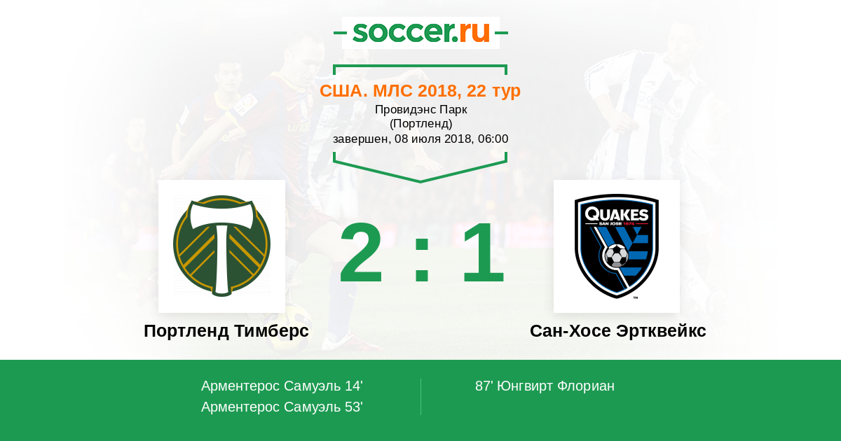 США. МЛС 04.07.2012 Портленд Тимберс Логотип футбольный клуб Портленд Тимберс 2:1 Логотип футбольный клуб Сан-Хосе Эртквейкс Сан-Хосе Эртквейкс